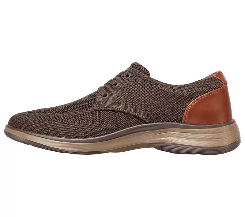 Show a dressier look with amazing support and comfort in the Skechers Arch Fit Darlo – Weedon shoe. Soft knit mesh fabric and synthetic in a slip on stretch laced dress casual comfort oxford with a removable Arch Fit insole and cushioned midsole.