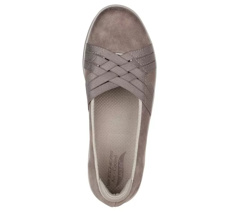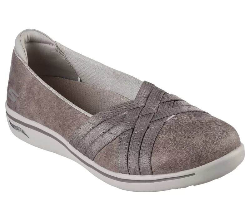 Skechers Arch Fit® Uplift take the day in easygoing style and long-lasting comfort. This Mary Jane style pull-on features a Perform Tex smooth fabric upper with crisscross straps, removable Arch Fit® insole and a lightweight ULTRA GO® cushioned midsole.