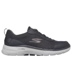 Elevate your steps in dynamic comfort with the Skechers GO WALK 6 – Bold Knight shoe. This pull-on sneaker features an athletic mesh upper, lightweight ULTRA GO® cushioning midsole, Air-Cooled Goga Mat insole, and high-rebound Hyper Pillars® for added support.