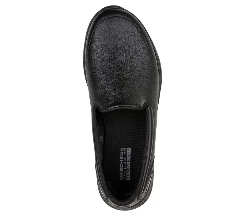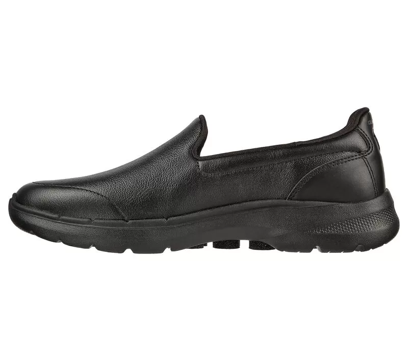 Walk in easy-wearing comfort with Skechers GO WALK 6 – Dorin. This laceless fit design features a smooth leather upper with lightweight ULTRA GO® cushioning, an Air-Cooled Goga Mat insole and high-rebound Hyper Pillar Technology for added support.