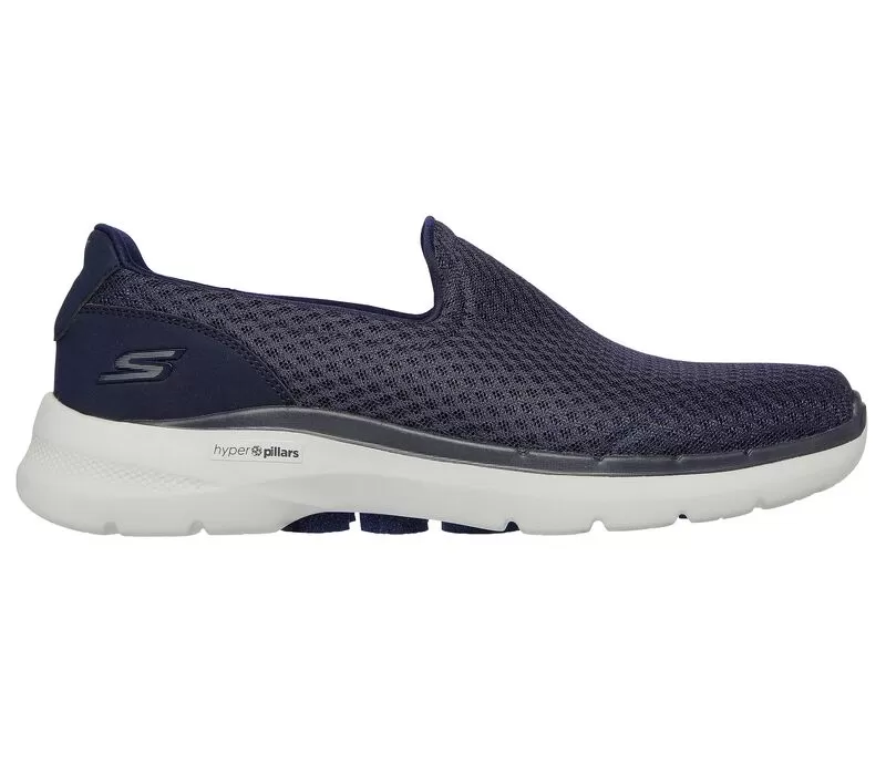 Comfortably stride throughout the day in well-cushioned comfort with Skechers GO WALK® 6 – Motley. This laceless fit design features an athletic mesh upper, lightweight ULTRA GO® cushioning midsole, Air-Cooled Goga Mat insole, and high-rebound Hyper Pillar Technology® for added support.