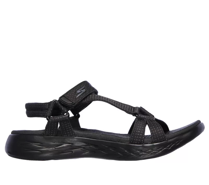 Spend sunny-weather days in style and comfort with Skechers On the GO 600 – Brilliancy. This sporty strappy river sandal features a mesh upper with a lightweight 5GEN® cushioning midsole and contoured Goga Mat® comfort footbed.