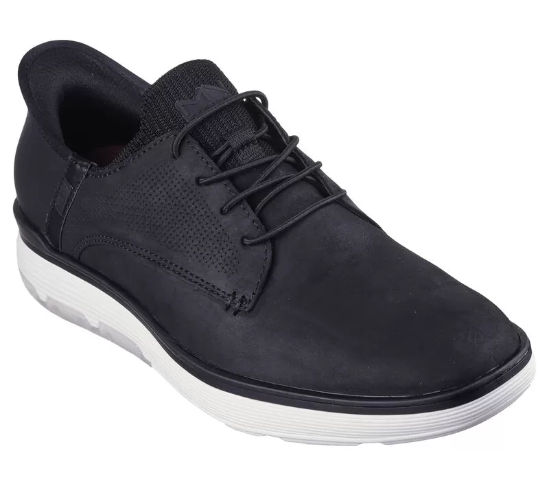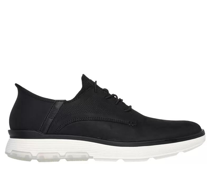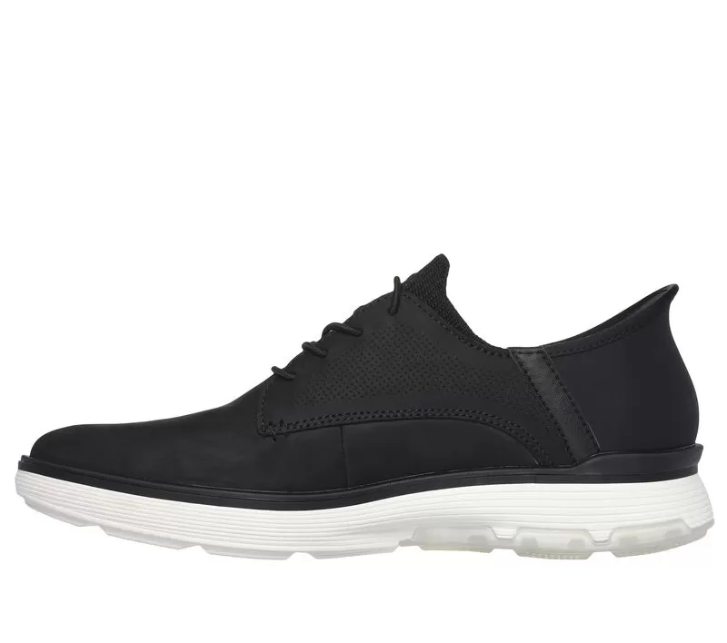 Dress the part and maximize your efficiency with Skechers Hands Free Slip-ins® Mark Nason® Los Angeles Casual Glide Cell – Gable Lux. Designed with our exclusive Heel Pillow, this TOUCHLESS FIT® oxford dress style features a premium smooth leather upper with a hands-free molded heel panel, oxford lace front, translucent outsole detail, and a Memory Foam Lux insole.